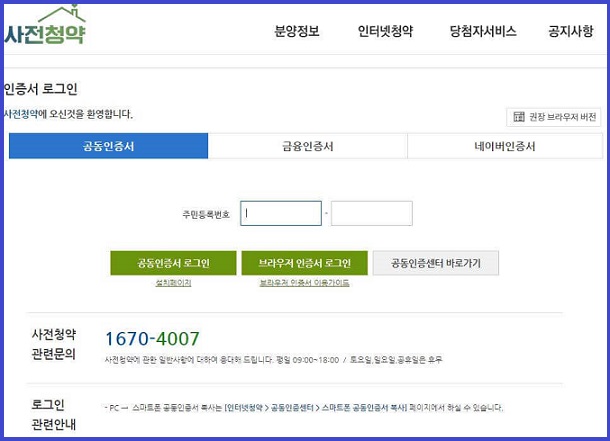 ** 사전청약을 하시기 위해서는 인증서 로그인을 하셔야 합니다.