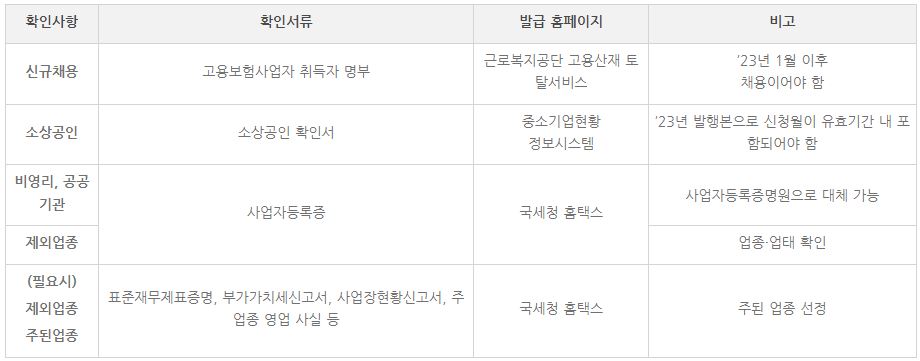 * 신청조건 : 2023년 신규인력을 채용후 3개월 이후 신청 (고용보험 기준)
